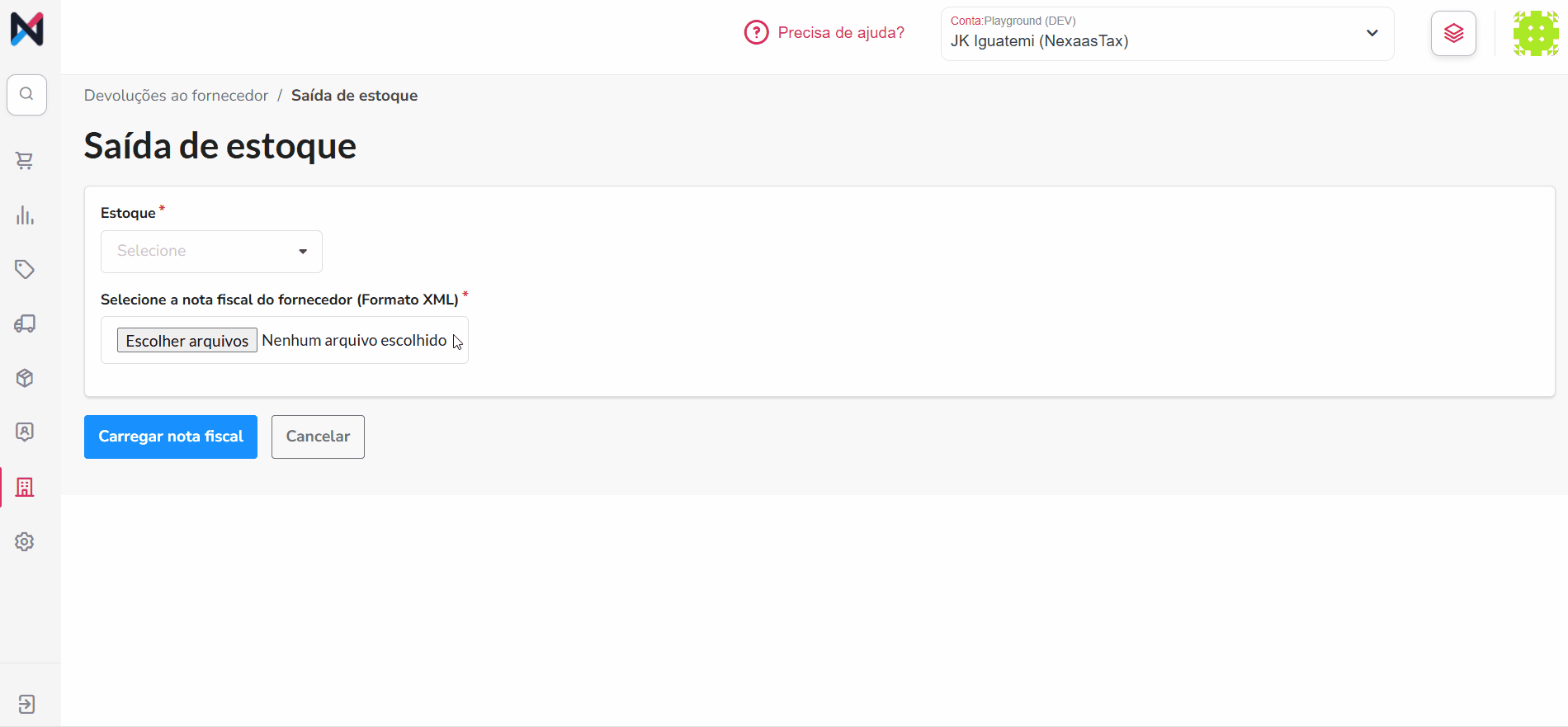 - Inicie o carregamento: clique no botão Carregar nota fiscal: