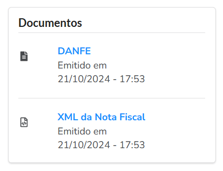Documentos: aqui você encontra os links para visualizar ou imprimir o DANFE e baixar o arquivo XML da nota emitida: