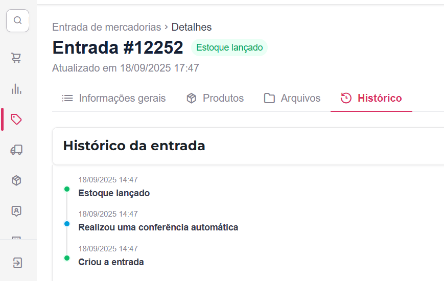 Um guia rápido: explorando cada seção da sua entrada de mercadoria