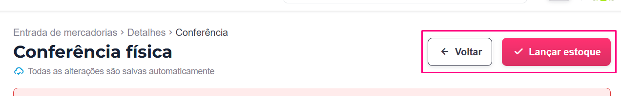 - Lançar estoque: só deve ser clicado após você conferir todos os itens e resolver as pendências. Ao acioná-lo, os produtos são oficialmente adicionados ao seu estoque.