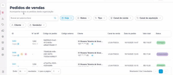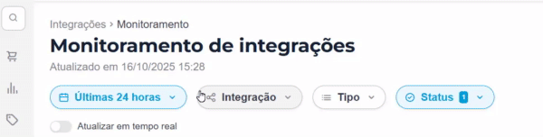 | Integração | Selecione uma integração específica com um fornecedor de serviço (por exemplo, OMS, VTEX etc.) para ver somente os eventos relacionados a ela. |