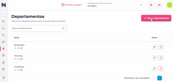 Esta tela permite que você organize e gerencie seus produtos de forma ainda mais segmentada através dos Departamentos.