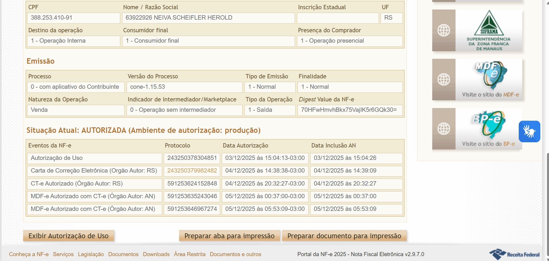 📝 Acompanhamento e download da CC-e