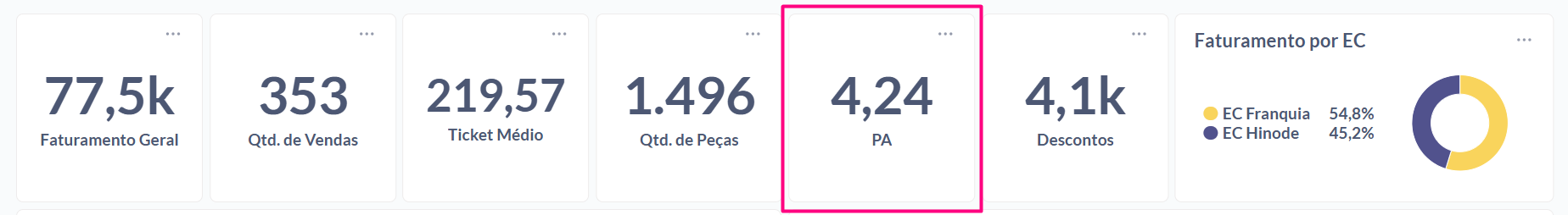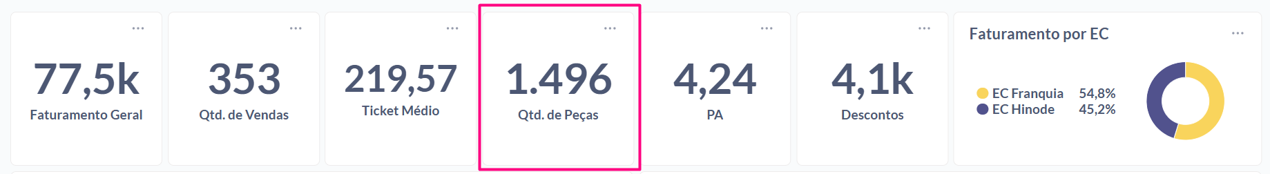 - Exemplo prático: imagine que você olha para o painel e vê 1.496 peças vendidas. Se dividirmos isso pelas 353 vendas, descobrimos que cada consultor está levando, em média, 4 produtos por vez (que é o seu PA - Peças por Atendimento). Se esse número baixar para 2, significa que eles estão vindo apenas buscar "pedidos de emergência".