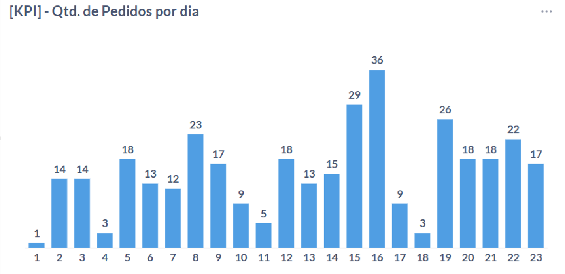 - O que é: um gráfico de barras que mostra quando o movimento acontece: o total de pedidos realizados em cada dia do mês.