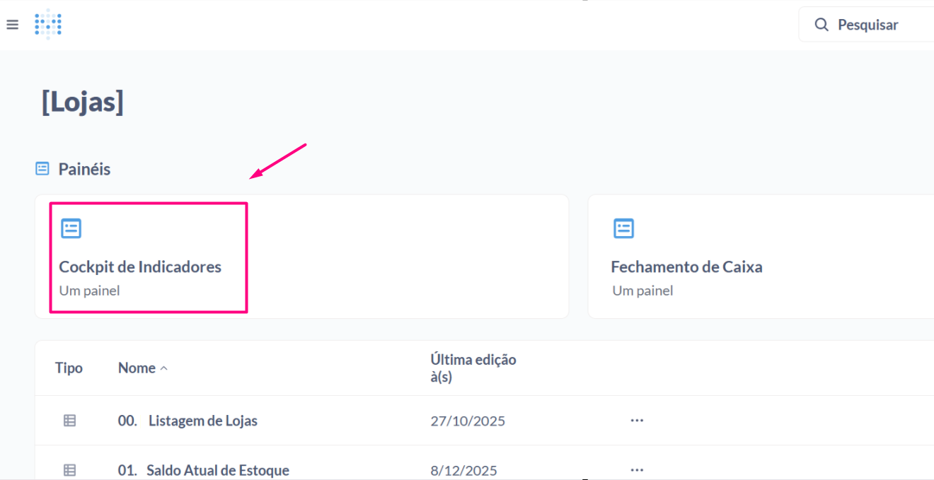 Após, no menu principal, clique na Cockpit de Indicadores, localizada na parte superior da tela: