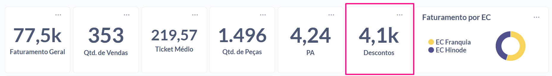Dica: o ideal é que o valor de descontos seja sempre uma pequena fatia comparada ao seu faturamento. Se o número de descontos subir, verifique se a quantidade de peças por atendimento (PA) também subiu. Se você deu desconto e o consultor levou mais produtos, a estratégia funcionou! Se o desconto subiu e as vendas continuam iguais, sua margem de lucro está em perigo.