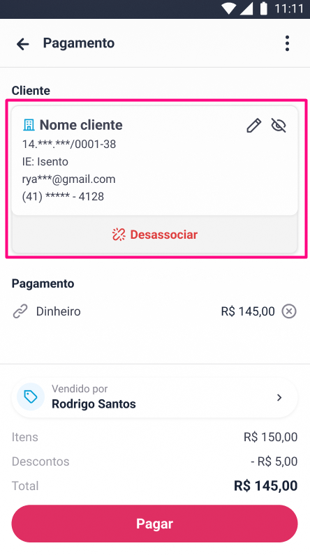 Com o cliente adicionado, é hora de definir como será realizado o pagamento. Clique em Pagar para prosseguir e escolher a opção que melhor atender às suas necessidades.