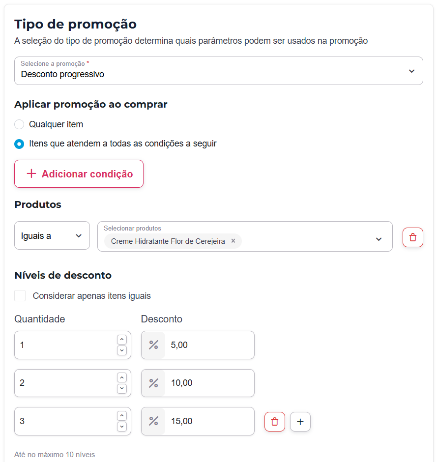 💡 Dica: você pode criar até 10 níveis diferentes de desconto progressivo!